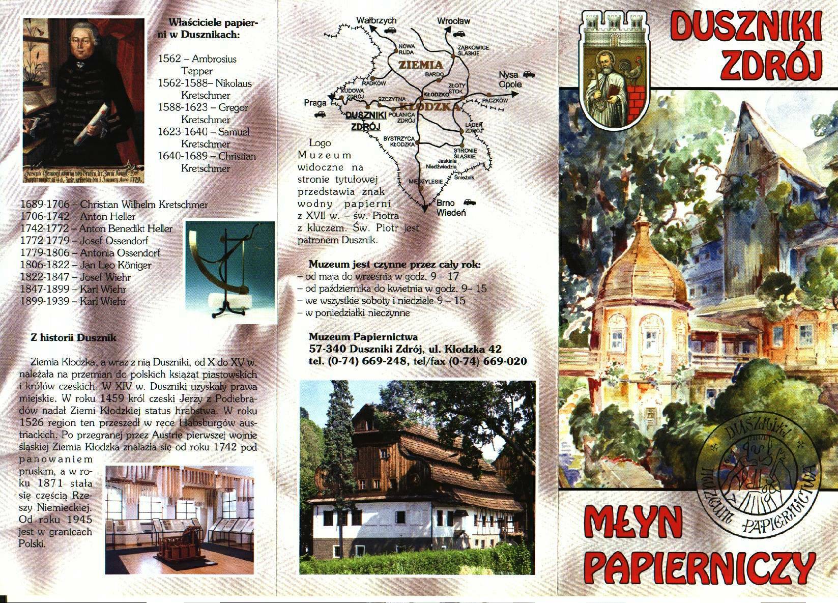 Muzeum Papiernictwa przy Młynie Papierniczym, 57 340 Duszniki Zdrój, ul. Kłodzka 42