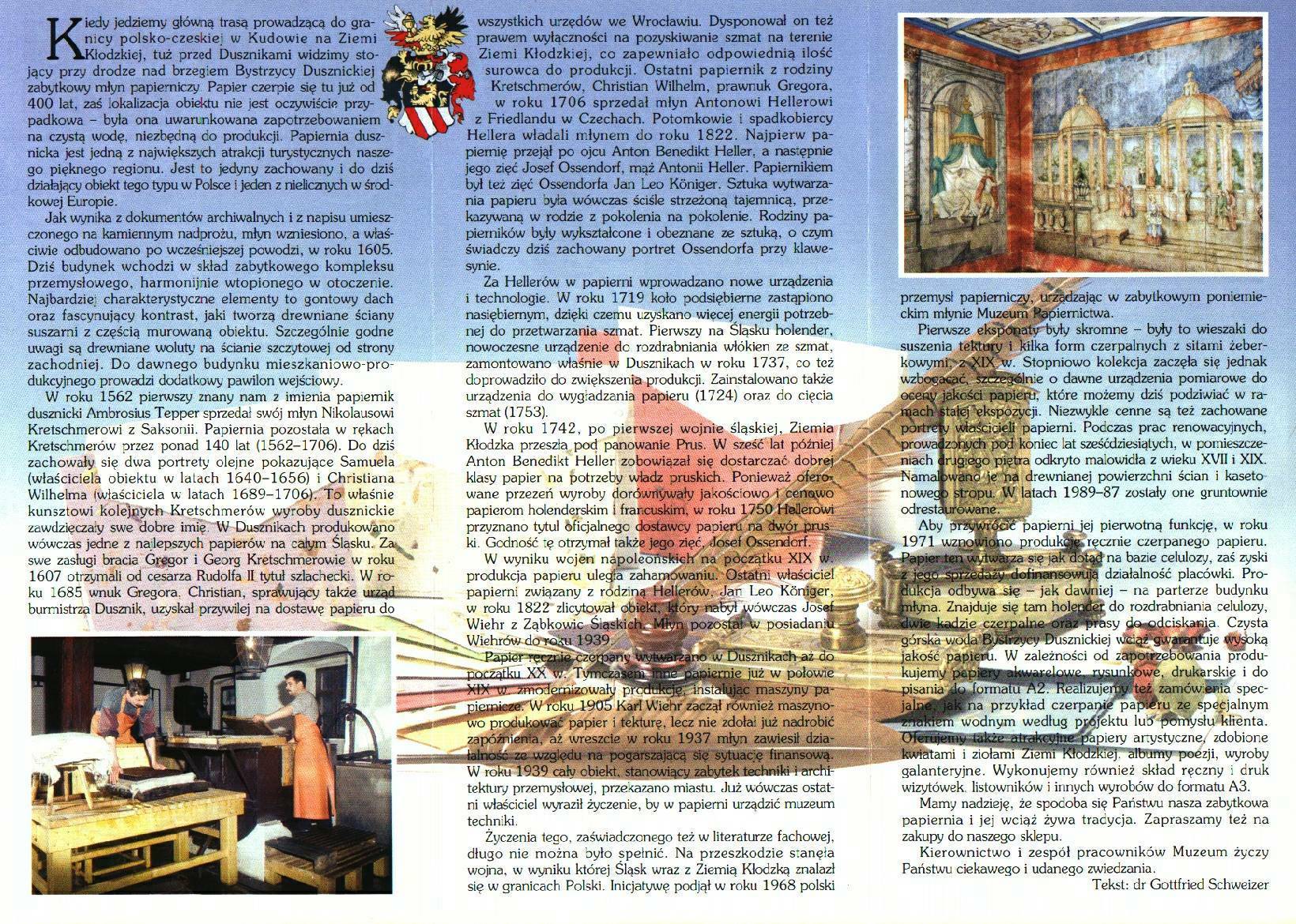 Historia młyna papierniczego wg ulotki wyd. Muzeum Papiernictwa