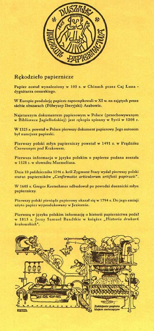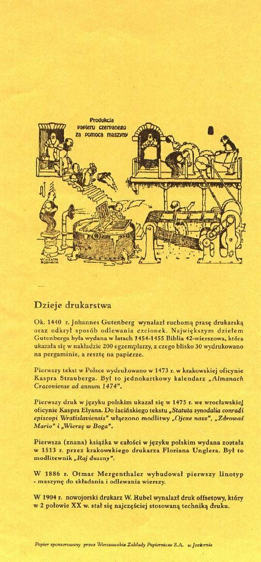 dzieje papieru wg ulotki Warszawskich Zakładów Papierniczych w Jeziornie